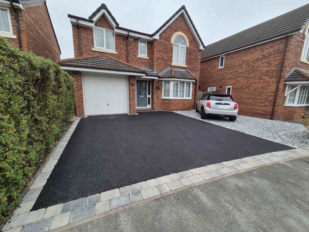 Tarmac Driveway In The Cefn Y Bedd Wrexham Area Completed With A Single Band Block Paved Edge In The Charcoal Colour
