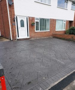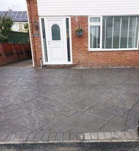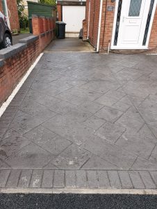 If you are thinking about buying a new printed concrete driveway in Wrexham and Chester or the surrounding areas there are a number of factors to consider before installation, mainly drainage issues. Pattern imprinted concrete is non permeable which means that water cannot pass through the concrete. Imprinted concrete driveways usually require a line drainage channel so that there is not any standing water on top of the finished driveway.